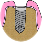 Step One:After the implant has had a chance to attach to the bone tissue, the temporary cap is removed from the anchor and a post is attached to the anchor. |